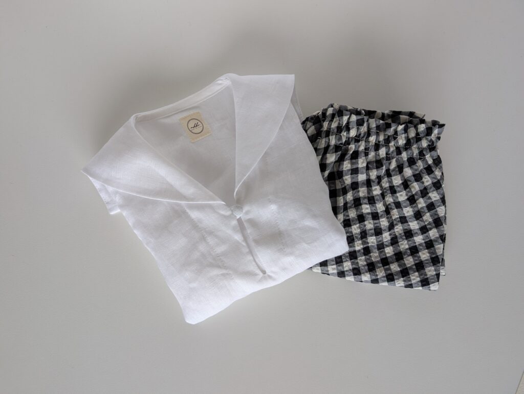 「子どもが自由に、元気に動けるように」 身幅には程よいゆとりを持たせ、心も身体も締め付けないシルエットにこだわりました。前開きのくるみボタンを外せば、お着替えもスムーズ。 一枚で凛と着こなすのはもちろん、羽織りものとして重ね着を楽しむのも、夏の新しい景色になります。普段の何気ない日から、少し背筋を伸ばしたい大切な日まで。 清潔感あふれる一着が、お子様の夏の思い出を静かに彩ります。
